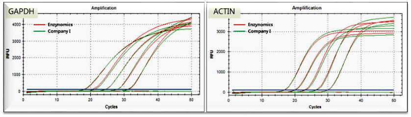| SuperiorScript III cDNA Synthesis Kit shows comparable efficiency and sensitivity on real-time PCR with product from company I. |